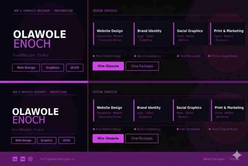 I am a visionary Graphics Designer and Visual Strategist dedicated to bringing brands to life through the power of cohesive identity. I operate at the vital intersection of high-end aesthetics and commercial strategy—crafting visual narratives that are not only striking to the eye but are purposefully engineered to communicate values, drive conversions, and leave a permanent mark on the marketplace.