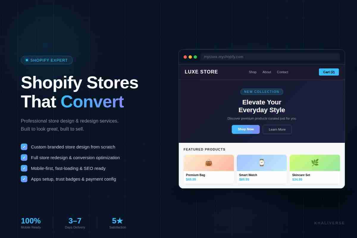 I will design or redesign a professional, high-converting Shopify store that looks great on every device, builds instant trust with your customers, and is fully set up and ready to launch.