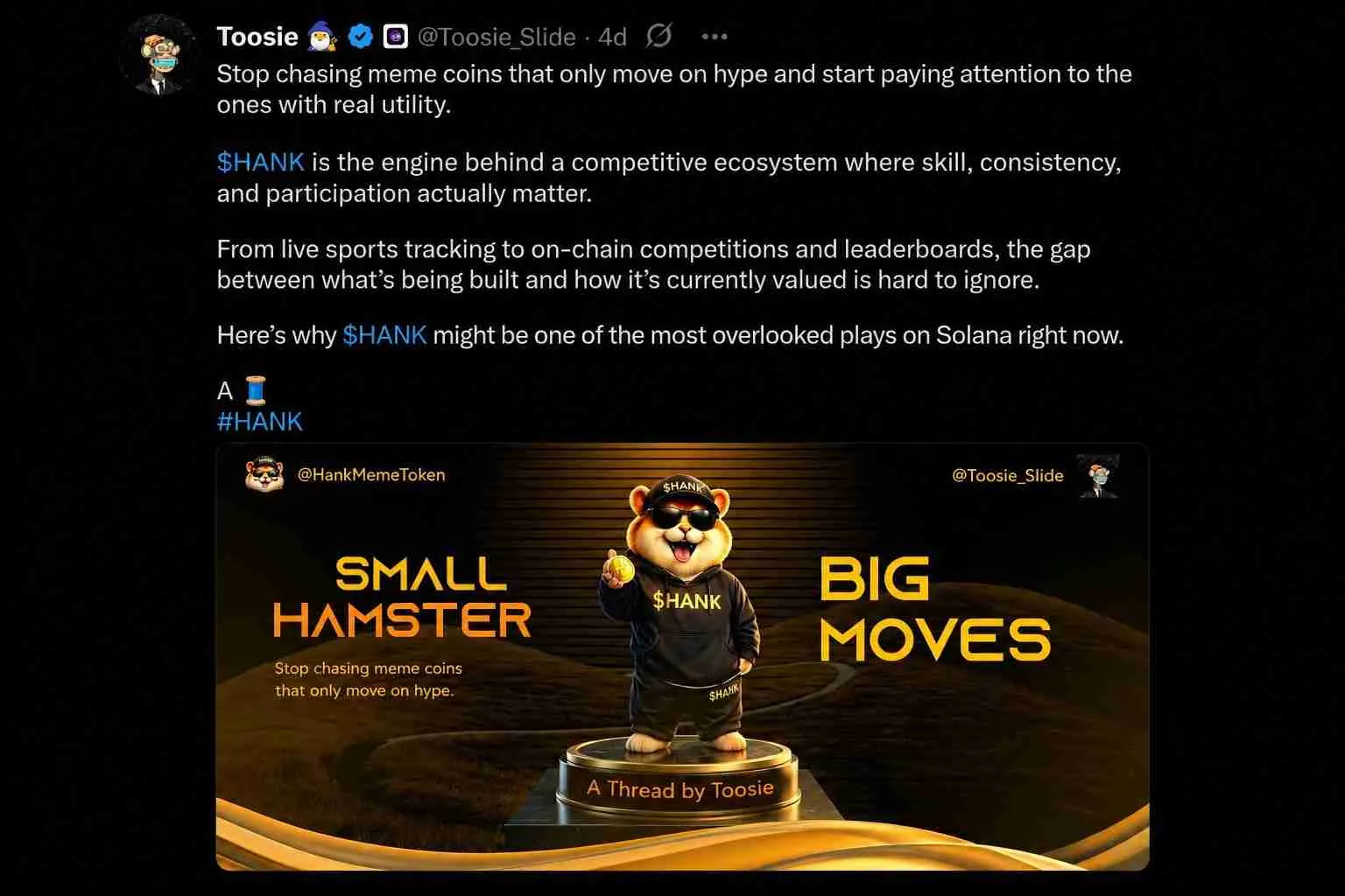 Web3 Thread Contest - 1st Place Winner, $HANK on Solana.