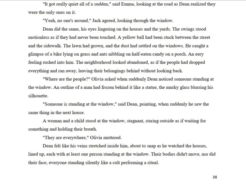 The novel includes horror, thriller, fantasy, drama, and romance and is about crypsis aliens invading the earth while a friend group fights to survive.