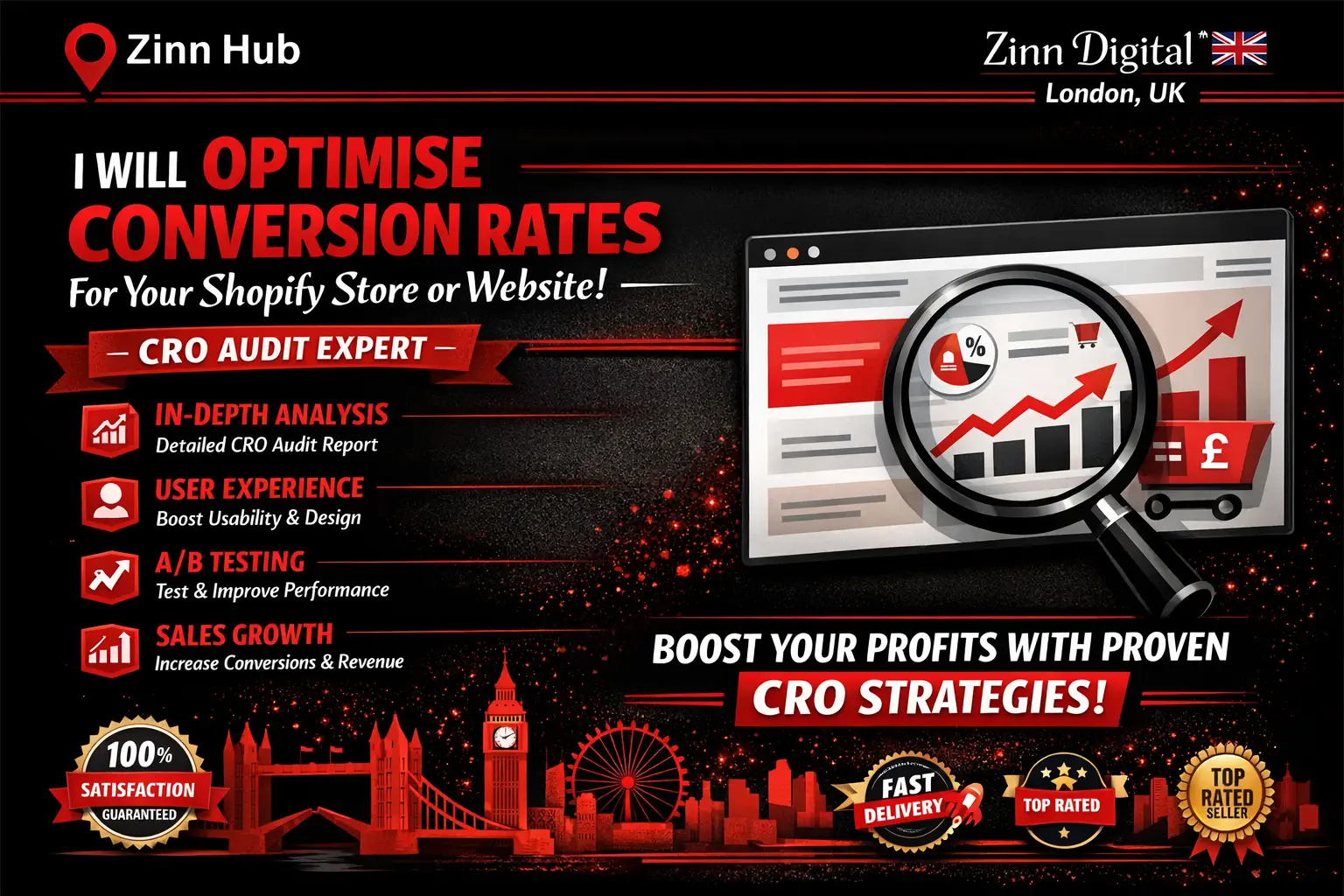 Conversion Rate Optimisation (CRO) Audit Getting traffic but not seeing sales or leads? The issue isn't your marketing—it's your website. Hidden friction points stop visitors from taking action. With 15+ years of CRO experience and over 30,000 websites optimised, Zinn Digital ™ will run a Comprehensive CRO audit (desktop + mobile) to identify what's hurting your conversions and show you exactly how to fix it.