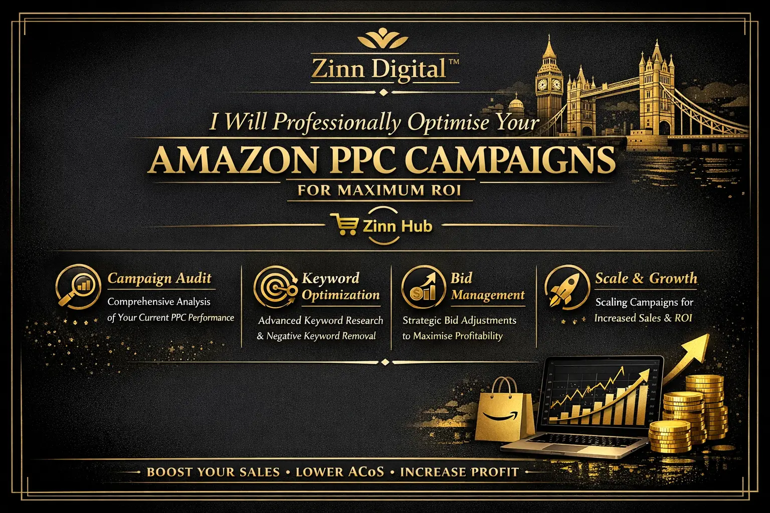 At Zinn Digital™, we are Certified Amazon FBA PPC Ads Experts with extensive eCommerce experience. We specialise in managing and optimising PPC campaigns that increase sales, boost visibility, and lower ACOS. Our proven GAP Strategy saves you thousands in wasted ad spend by identifying profitable market gaps, driving accurate traffic, and improving your organic ranking with minimal cost.