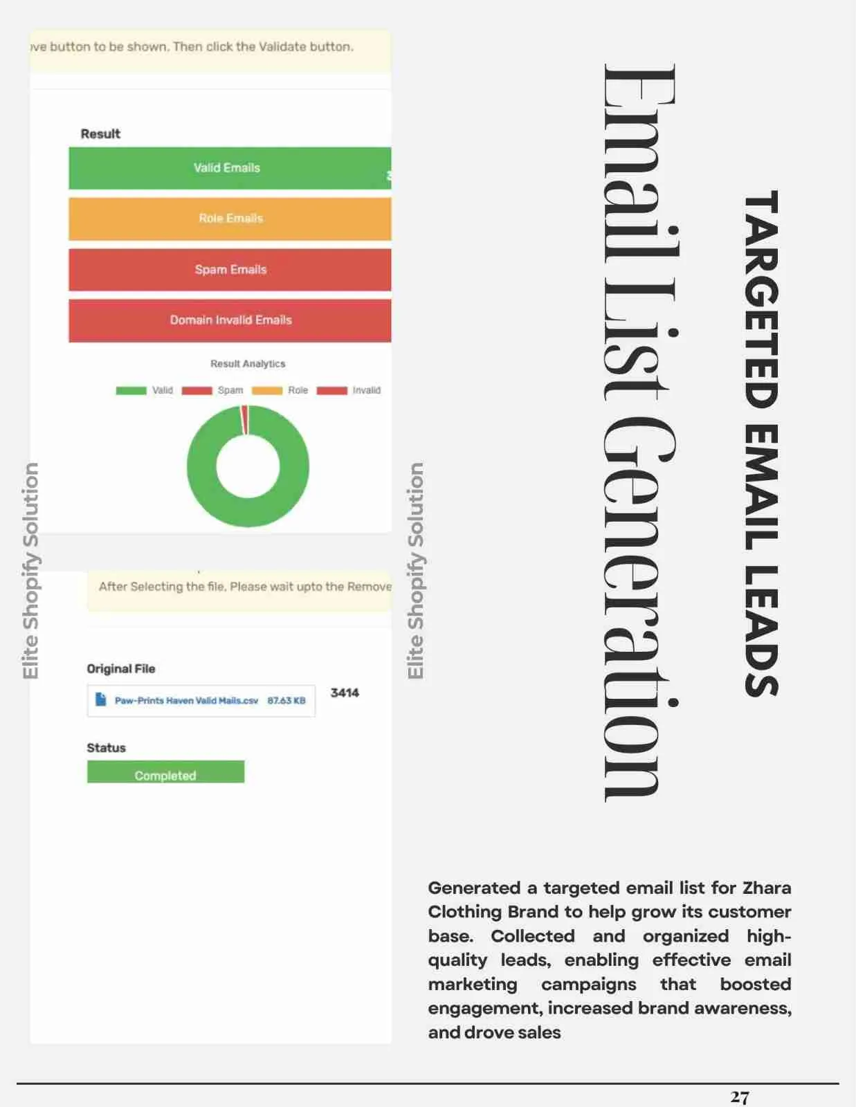 Generated a targeted email list for Zhara Clothing Brand to help grow its customer base. Collected and organized high-quality leads, enabling effective email marketing campaigns that boosted engagement, increased brand awareness, and drove sales