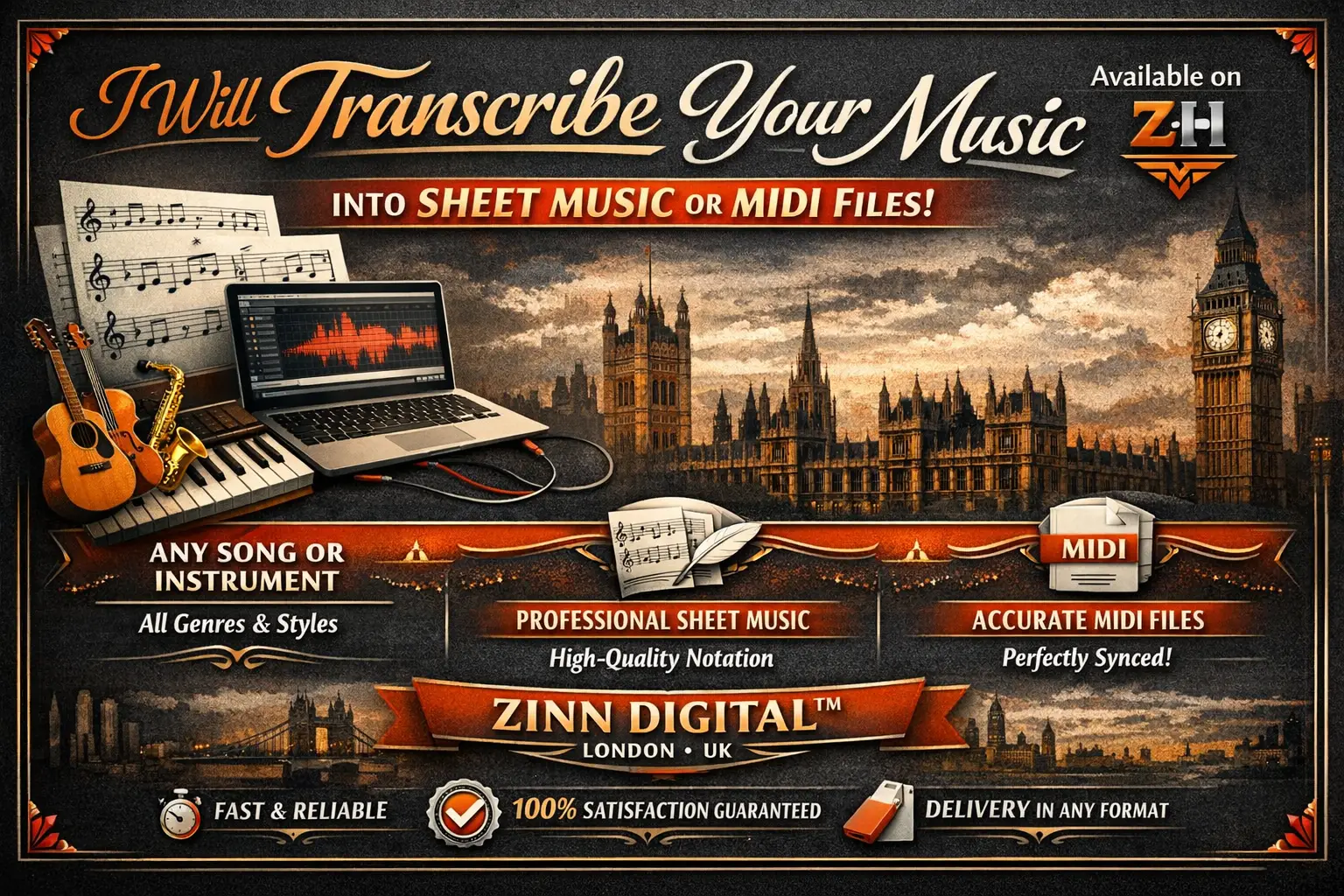 Hello! My name is Zinn Digital ™, I am a professional musician based in London, England, and in this Zinn, I assure you a beautiful and 100% accurate transcription for piano or any other instrument for your project.