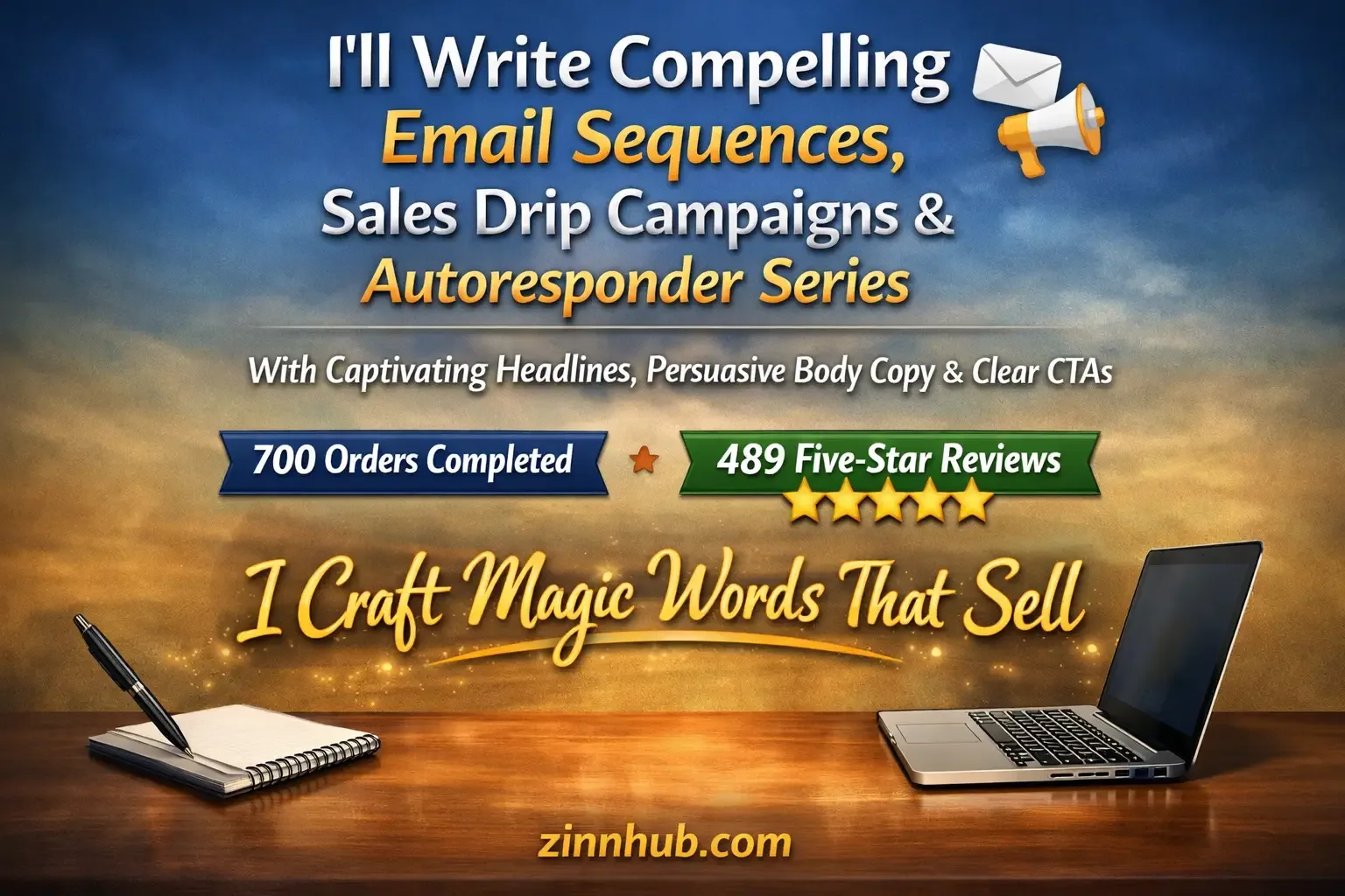 I'll write compelling email sequences, sales drip campaigns and autoresponder series with captivating headlines, persuasive body copy and clear CTAs — 700 orders completed, 489 five-star reviews. I craft magic words that sell.