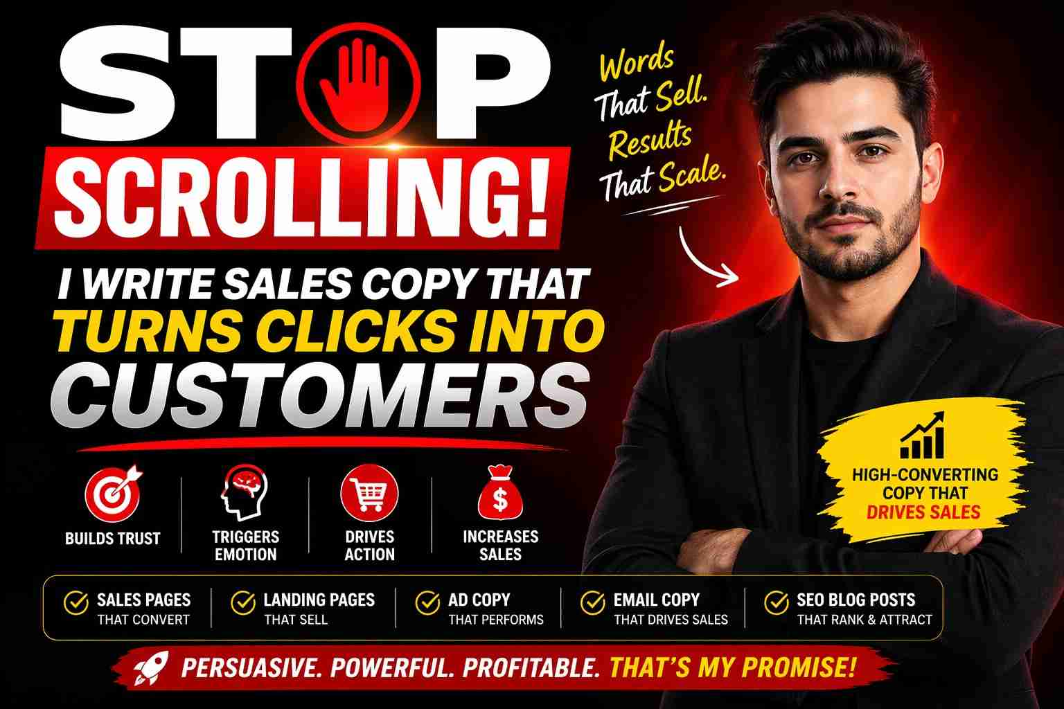 I write high-converting, psychology-driven sales copy either conversational or persuasion style that turns attention into action and visitors into paying customers. My job is not just to make your words sound good — it is to make your words sell.