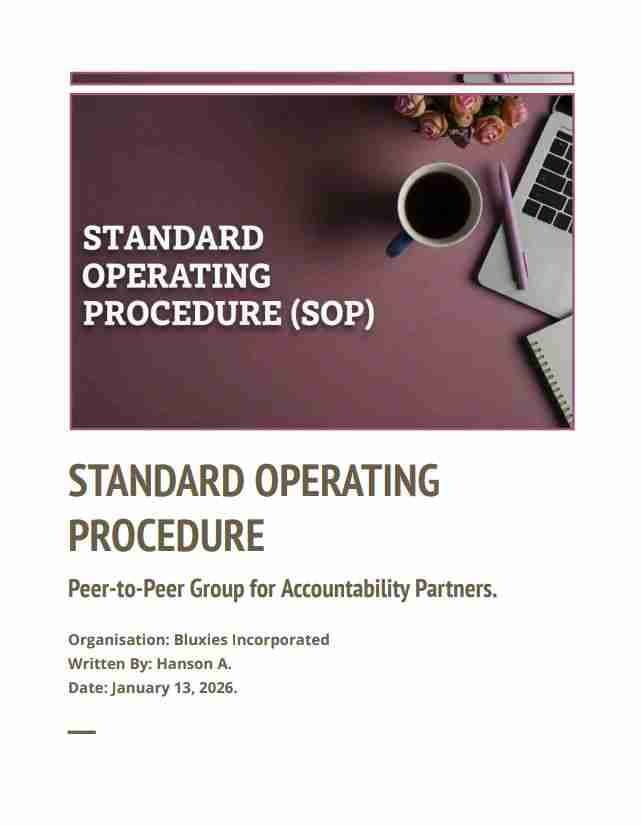 Authored a full Standard Operating Procedure document for a Peer-to-Peer Accountability Group under Bluxies Incorporated, covering structure, processes, and coordination guidelines.