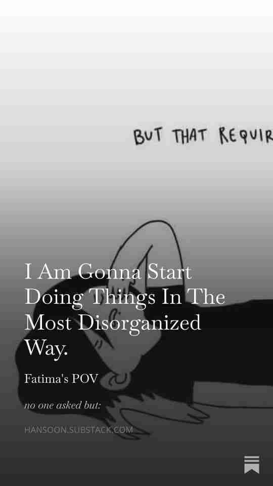 Genre: Personal Essay / Newsletter Writing / Conversational Prose. Ghostwrote a Substack piece for Fatima's POV, a personal brand newsletter. The piece used a relatable, self aware hook to pull readers into a candid reflection on productivity, perfectionism, and the pressure of doing things right. This demonstrates my ability to write in someone else's voice entirely, matching their tone, audience, and personal brand identity while keeping the content raw, human and engaging.