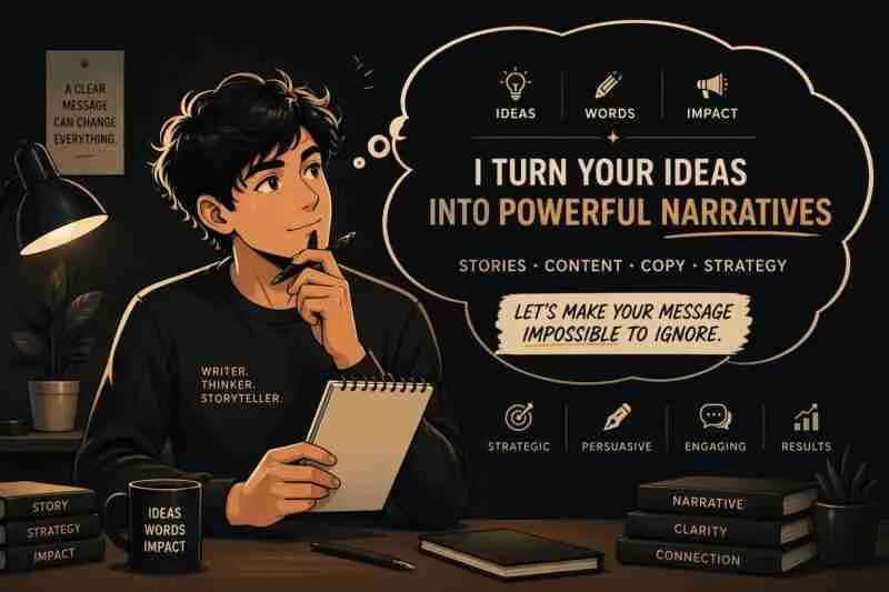 If you want your message to land clearly and stick, I turn it into narratives people can’t ignore or misunderstand. I don’t just write your ideas, I shape them into something your audience is forced to pay attention to.