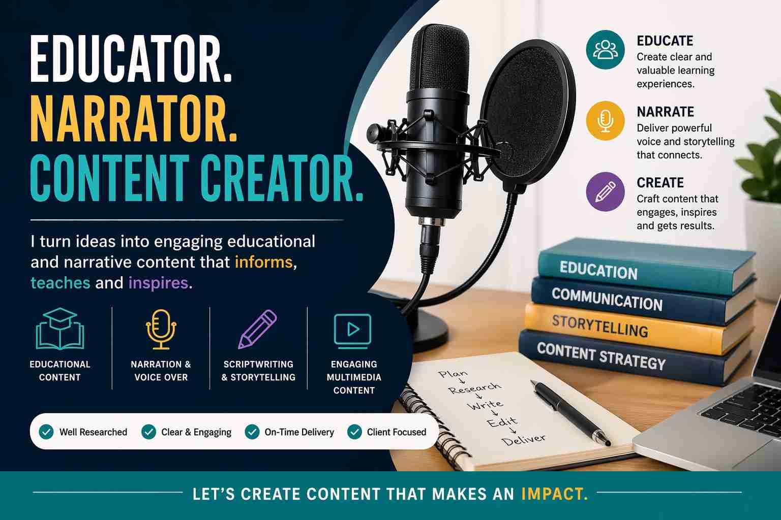 I am an educator and content creator specializing in clear, engaging, and high-quality educational content. I help individuals and organizations deliver structured, effective learning experiences through well-organized courses, tutorials, and instructional materials. Language supported: English.