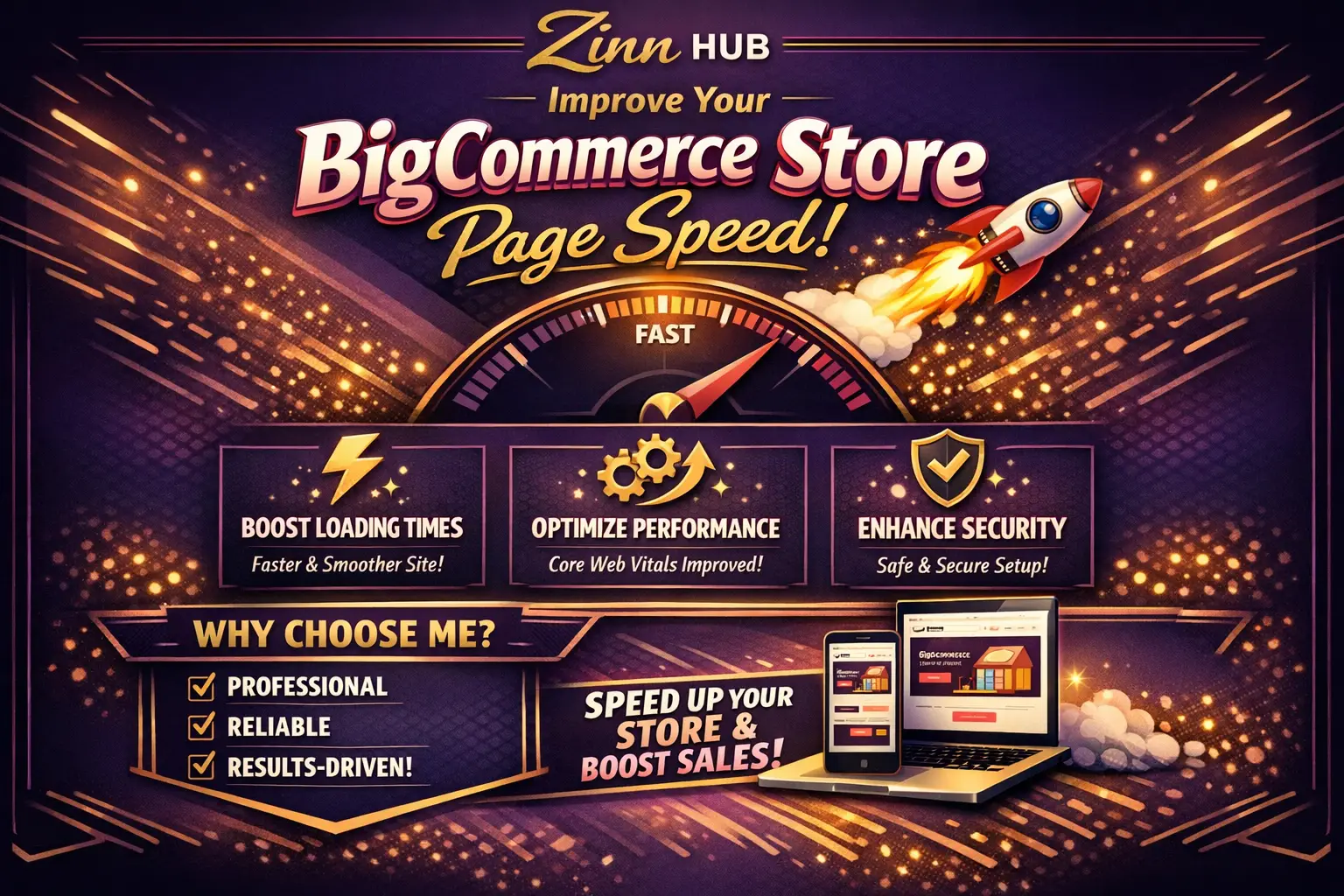 I'm Zinn Digital ™ and I will dramatically increase your BigCommerce website speed up to 75-90 on Mobile and 90-100 on Desktop Google PageSpeed Insights performance score and loading time to less than 3 seconds on GTmetrix.