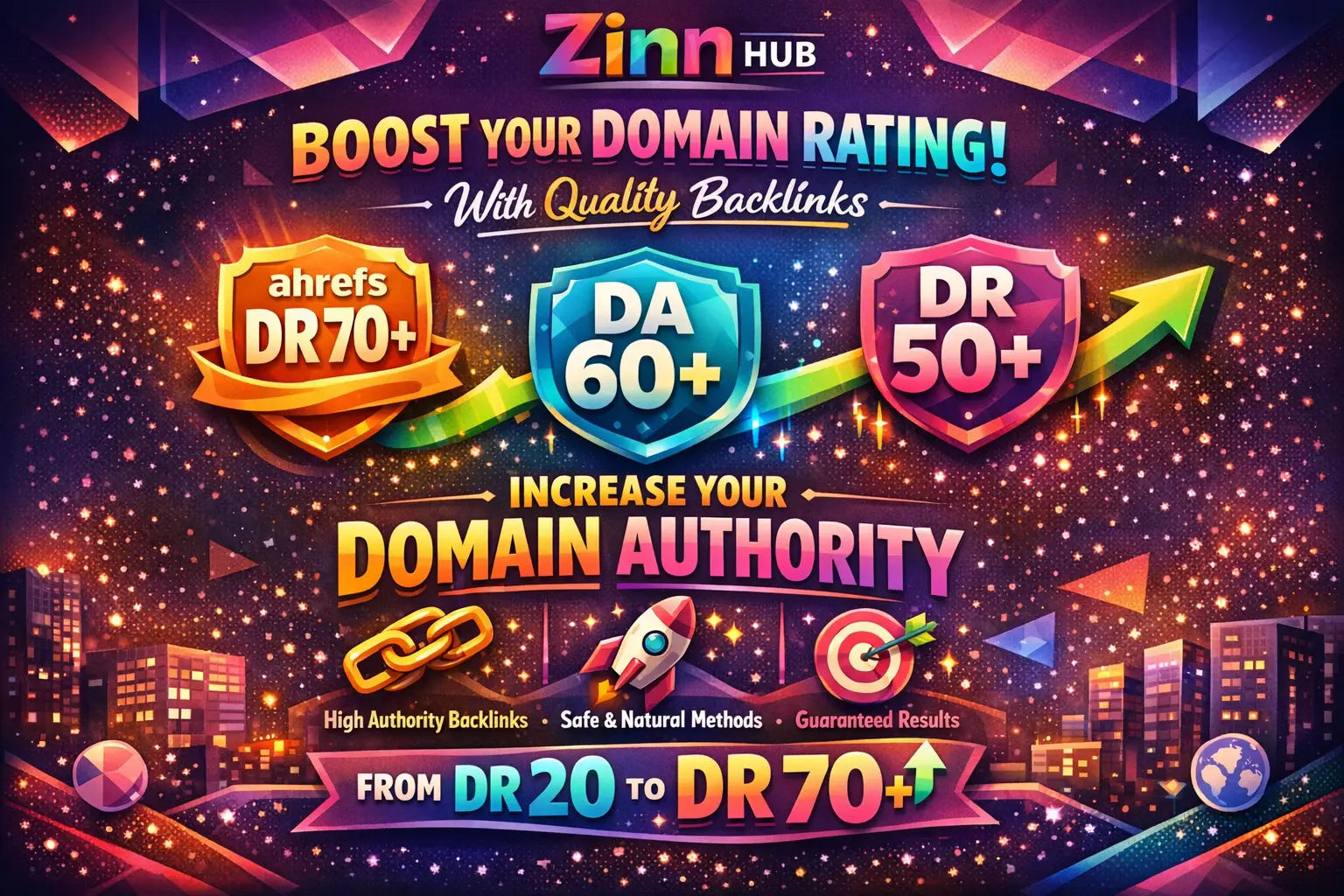 Elevate **Domain Rating (DR) to 70+**