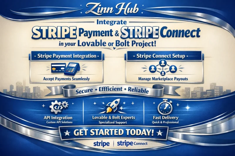 Are you building a project on Lovable.dev or Bolt.new and need seamless payment processing? Zinn Digital ™ will integrate Stripe Payment and Stripe Connect into your app, enabling secure transactions and multi-party payouts (e.g., for marketplaces or platforms). With our London-based expertise, your users can pay effortlessly, and you can manage payments like a professional!