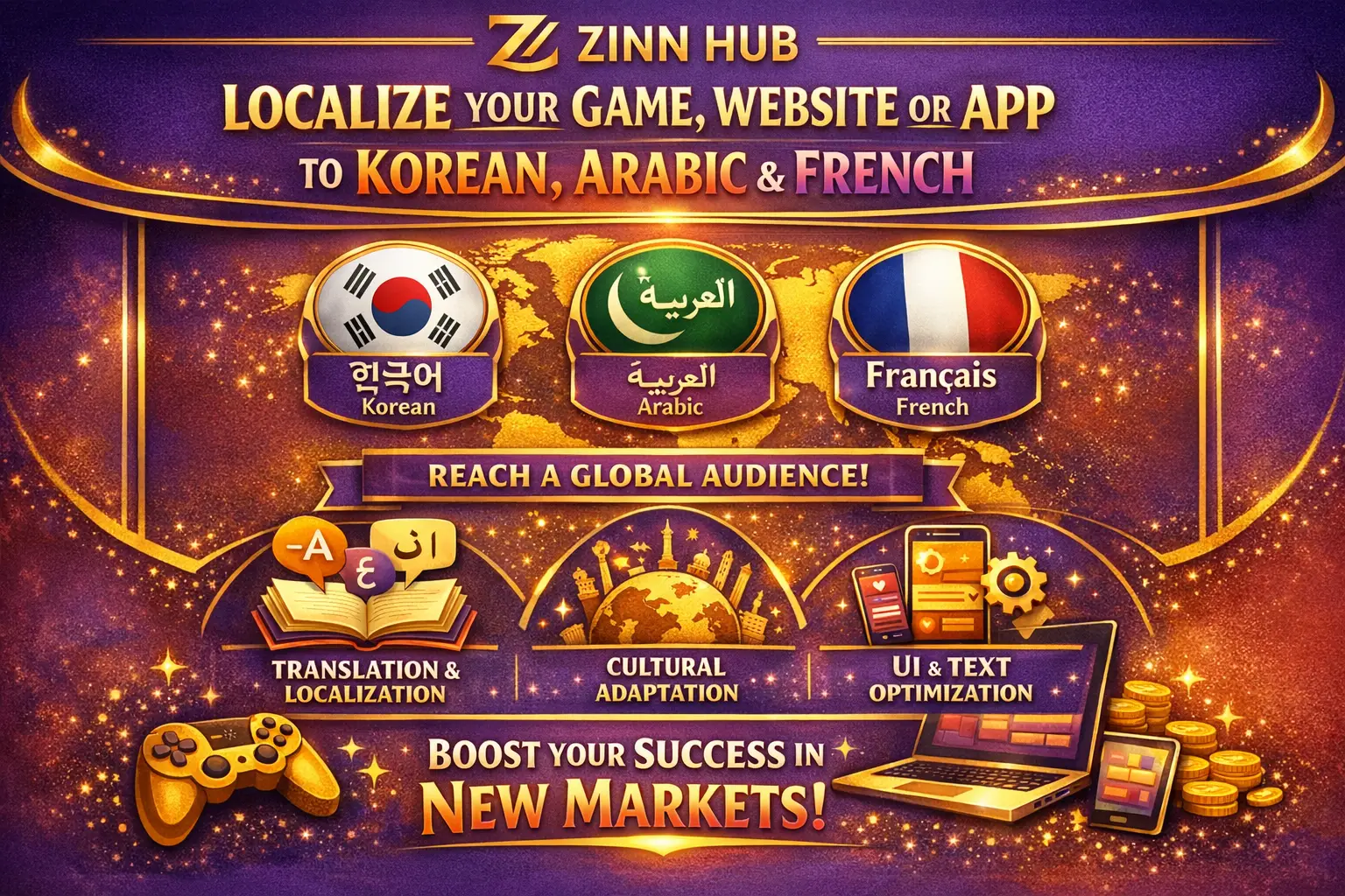 localize your game, website, or app to korean, arabic and french