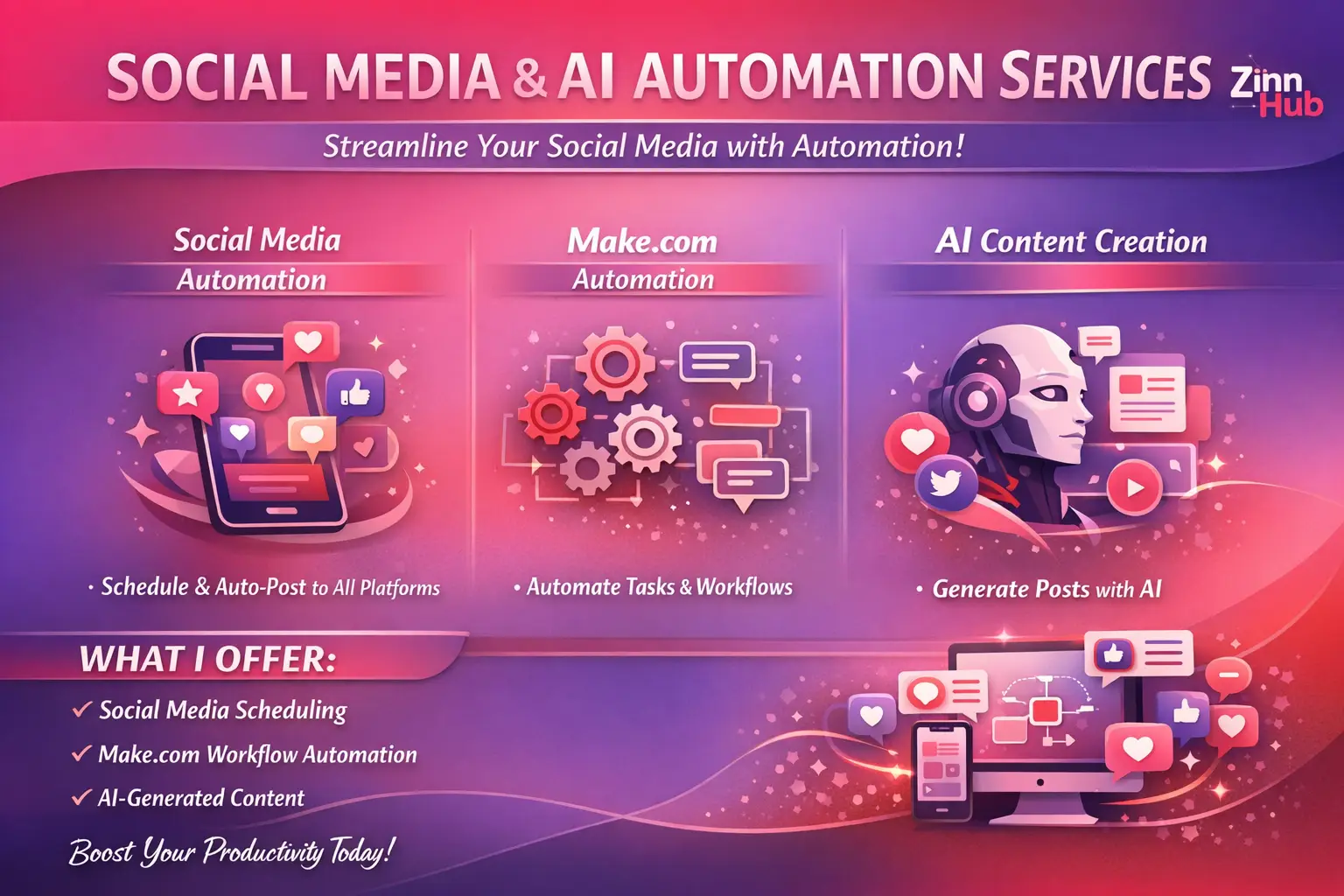Let Zinn Digital ™ build you a powerful, AI-powered Make.com automation system to generate, schedule, and publish your content with zero manual effort. Based in London, England, we specialise in transforming your content workflow.