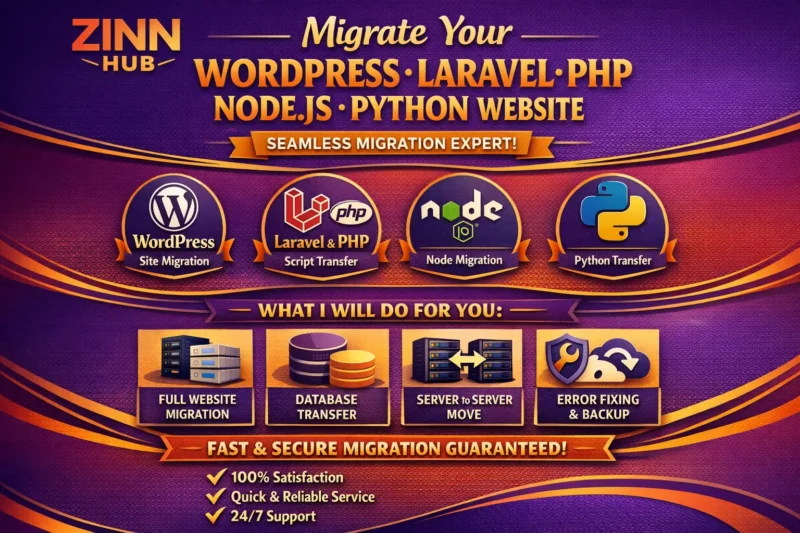 Planning to migrate your WordPress, PHP and Laravel website to a new host or domain? We're here to help! With our Zinn, you'll receive a complete migration service that includes full backup, file and database migration, URL updates, and testing.