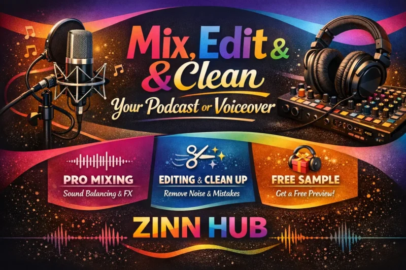 My name is Zinn Digital ™. I've been in the Audio world for 19 years. I've recorded and mixed Voice recordings for Big corporates like Deloitte, Nissan, Danone and many Banks, based from our London, England studio.