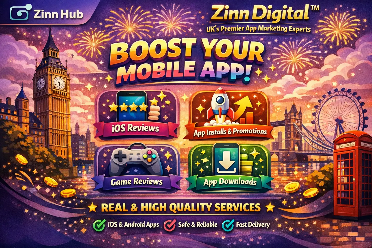 Are you struggling to get downloads for your iOS or Android app? Want to increase visibility, organic installs, and engagement? Look no further! Zinn Digital ™ specialises in mobile app promotion using highly effective marketing strategies to help your app rank higher and attract real users from our London, England base.