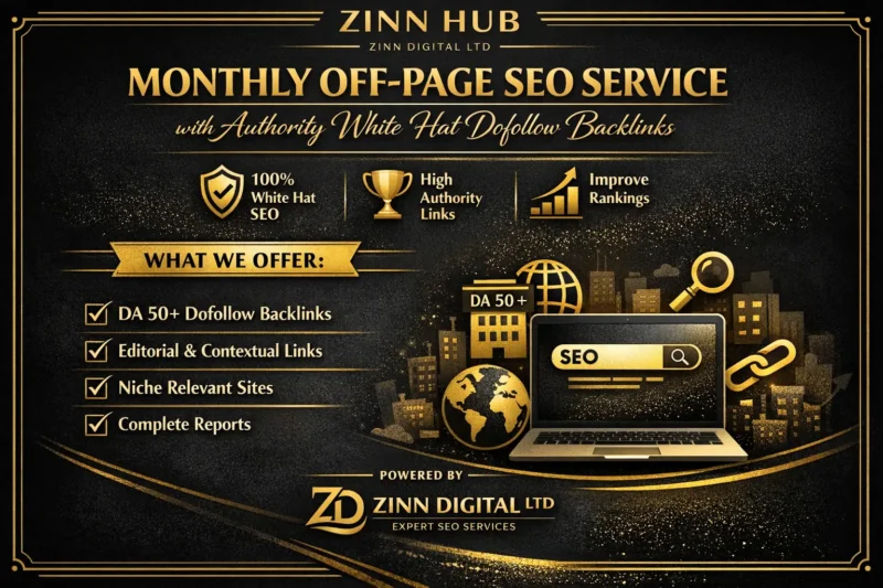 Monthly Off-Page SEO Service with Authority White Hat Dofollow Backlinks by Zinn Digital™