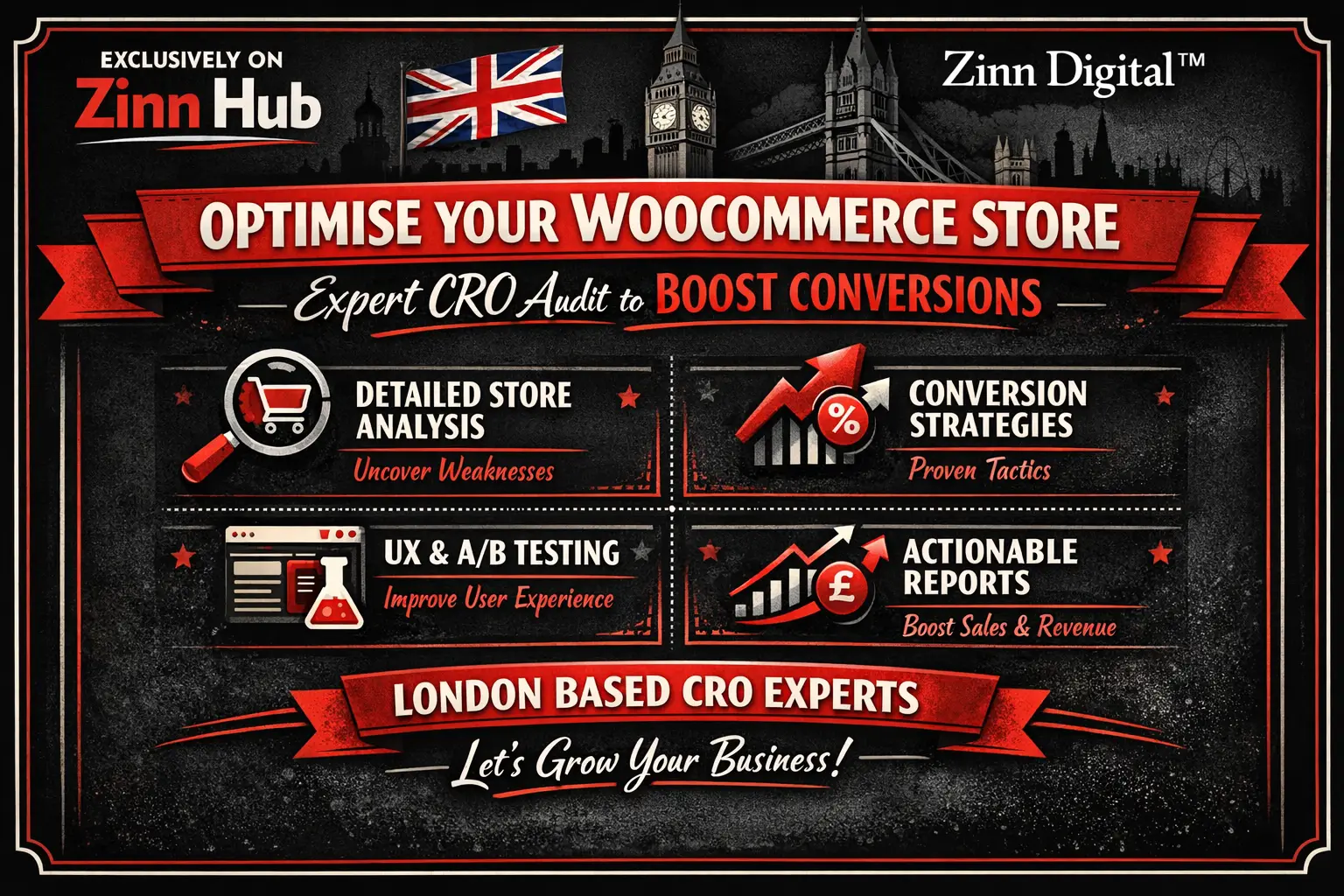 We are a WordPress & WooCommerce CRO specialist based in London, England, who helps store owners turn clicks into customers through data-backed Conversion Rate Optimisation (CRO) audits.