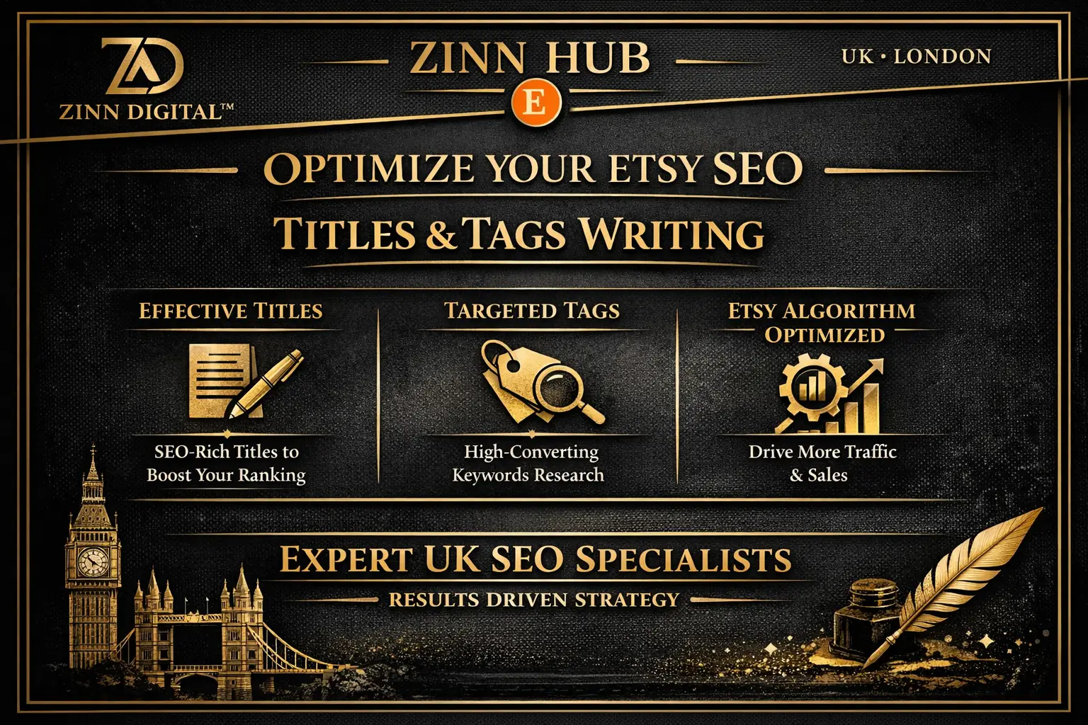 For £55, Zinn Digital™ will help improve your Etsy SEO by professionally writing your Etsy titles and tags for 3 of your listings.