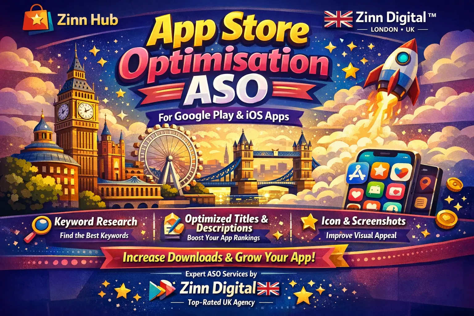 Zinn Digital ™ provides professional App Store Optimisation (ASO) services to help improve your app's discoverability, keyword targeting, and store listing quality using 100% policy-compliant methods. Based in London, England, we deliver expert mobile app marketing solutions.