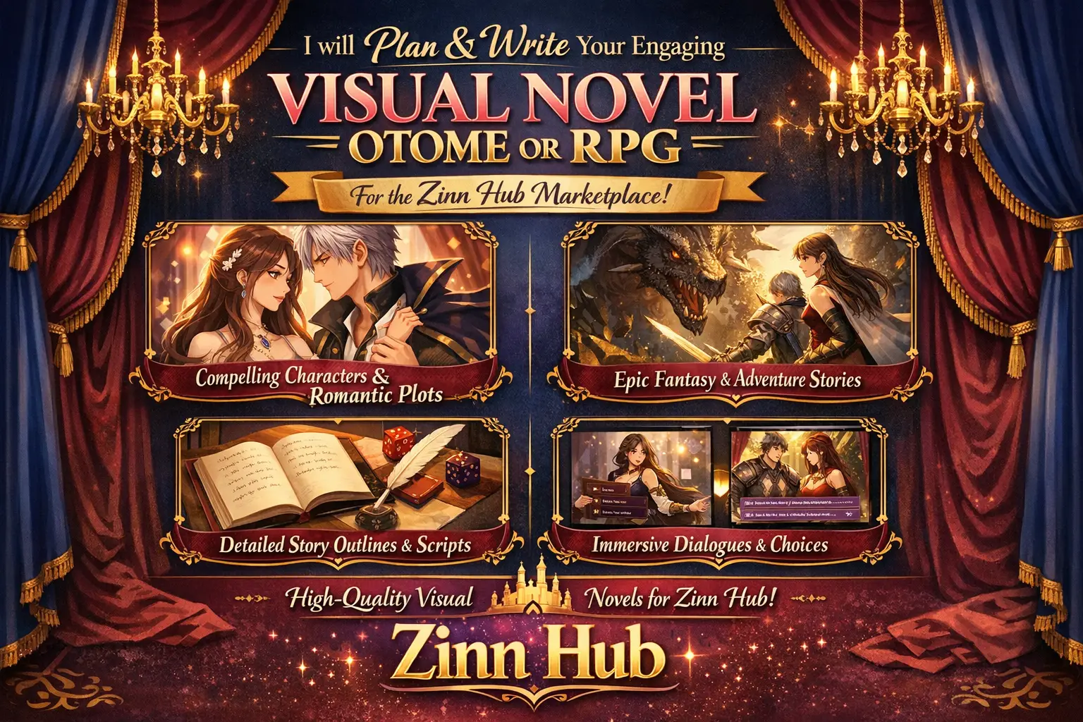 Looking for a skilled writer for your visual novel (or dating sim) or even for your next RPG? Look no further!