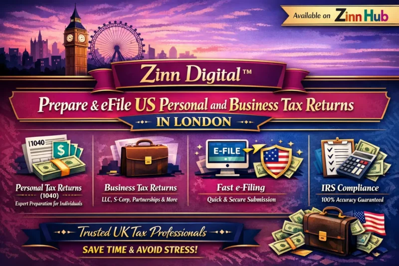 Zinn Digital ™ is a Certified CPA based in London, England, bringing years of experience in helping individuals and businesses navigate the labyrinth of tax regulations. We have a proven track record as a top-rated provider on Zinn Hub, earning a repeat clients badge for delivering excellence. Our commitment to excellence remains undiminished in providing exceptional tax services.
