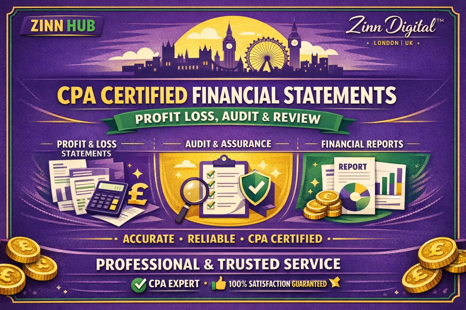 As a Certified Public Accountant (CPA) licensed in the United States, Zinn Digital ™ specialises in providing accurate and compliant financial documentation tailored to meet your needs. Based in London, England, with years of experience working with businesses of all sizes, we ensure that your financials are prepared with precision and in accordance with U.S. GAAP standards.