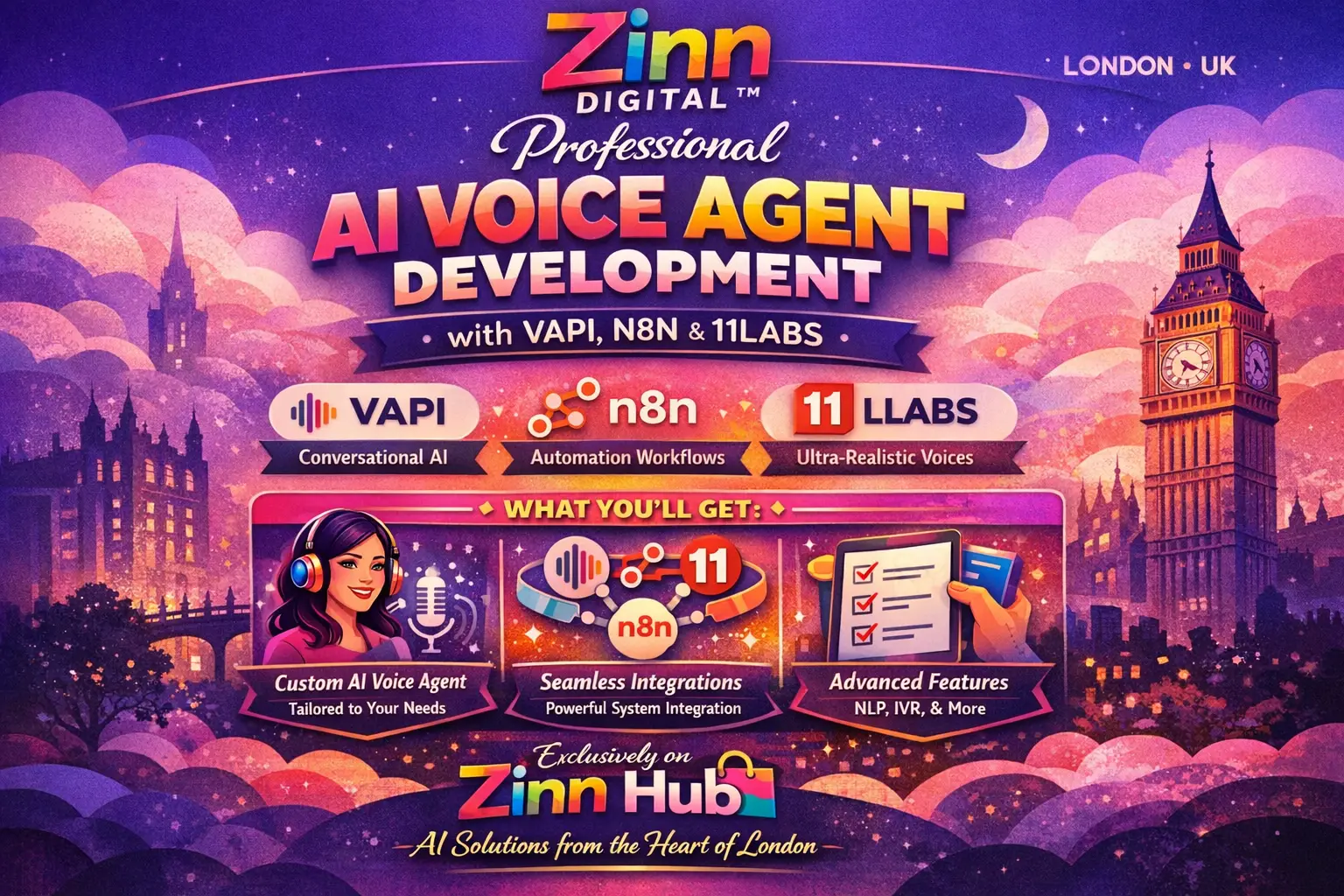 Zinn Digital ™ helps businesses build custom AI calling agents using VAPI AI, Elevenlabs, Bland AI or Retell AI to manage inbound/outbound calls, book appointments, qualify leads, send SMS, answer FAQs, and integrate with CRMs like GoHighLevel (GHL), HubSpot, Monday and many more using n8n/make.com automation.