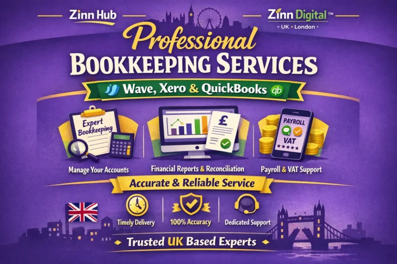 Professional bookkeeping services in Wave, Xero and QuickBooks by Zinn Digital ™