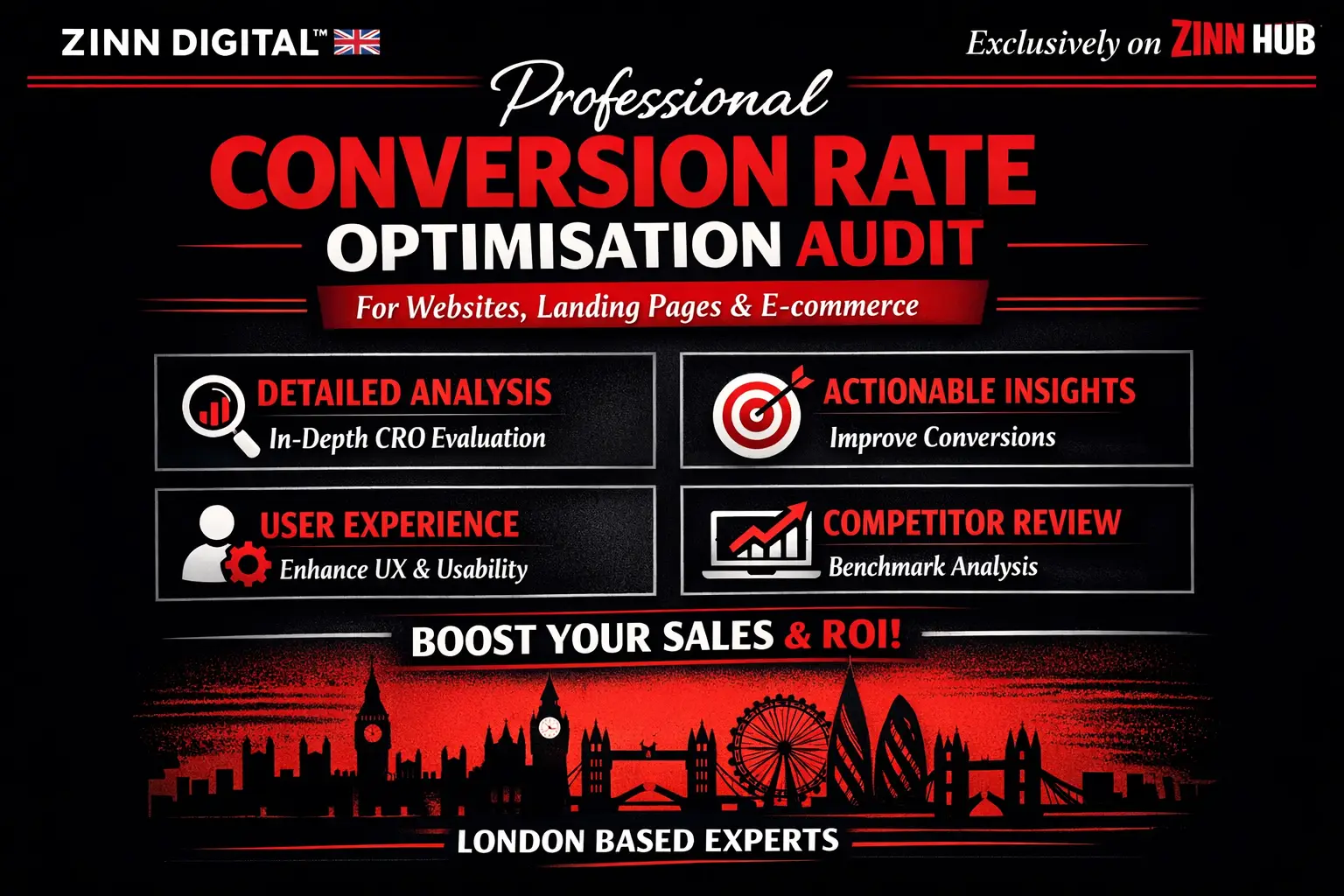 Hello, I'm from Zinn Digital ™, a Web Specialist and CRO Specialist with experience since 2010 in Marketing with Conversion Rate Optimisation (CRO) for Websites, Landing Pages and E-Commerce Businesses. Our team is based in London, England.