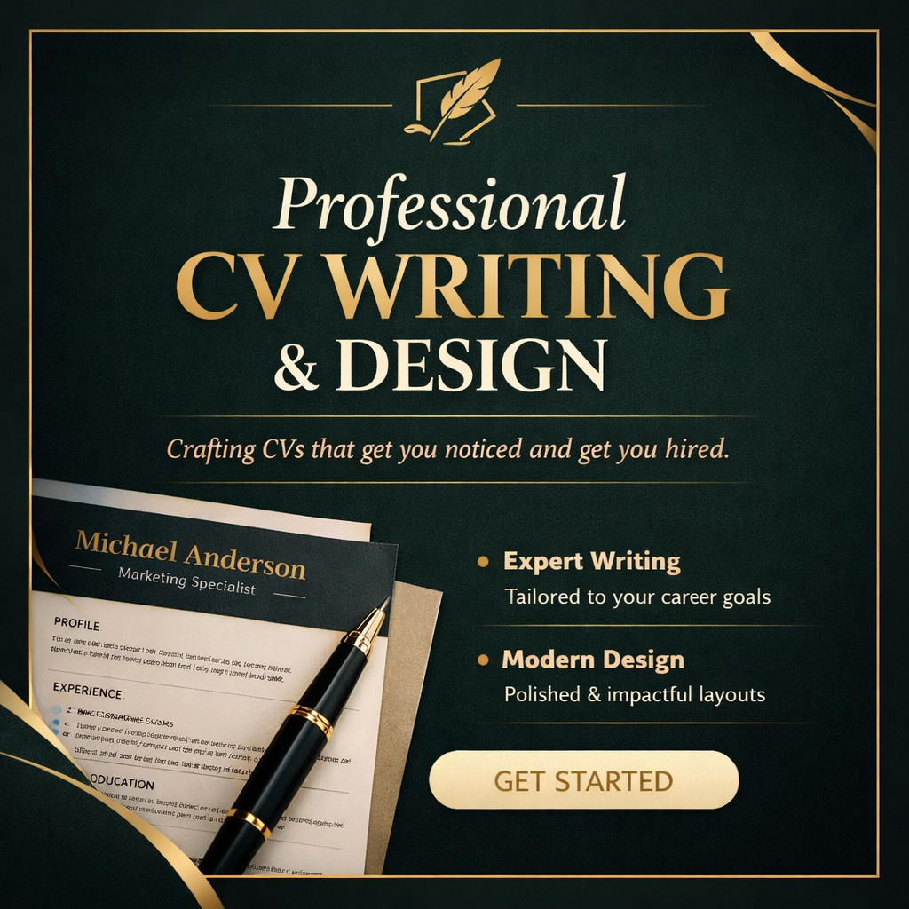 I provide professional CV writing and design services tailored to present your experience, skills, and achievements in the strongest possible light. Every CV is carefully structured to highlight your strengths, align with your career goals, and communicate your value clearly to employers.