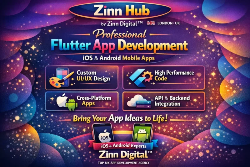 Zinn Digital ™ specialises in building mobile apps for Android and iOS using Flutter, React Native, and native frameworks. As experienced app builders, Android developers, and Flutter developers based in London, England, we create powerful apps for startups, businesses, and enterprises.