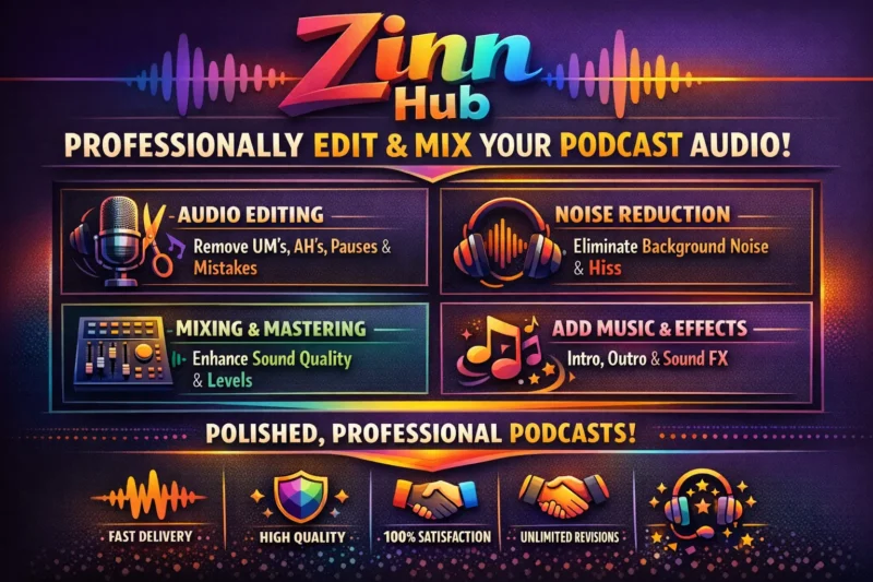 Seeking a professional podcast audio editor to elevate your podcast to the next level? Look no further! Zinn Digital ™ offers top-notch audio editing services, giving your podcast the high-quality sound it deserves.