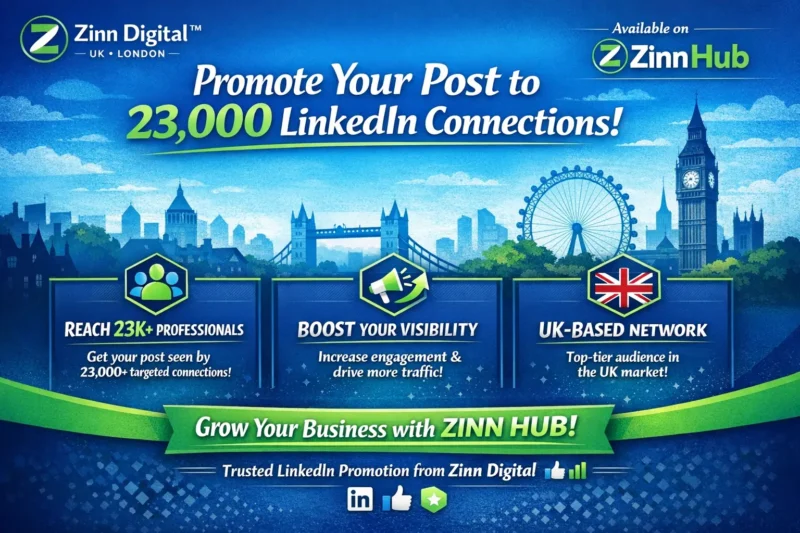 Promote your post to my 23,000 LinkedIn connections via Zinn Hub