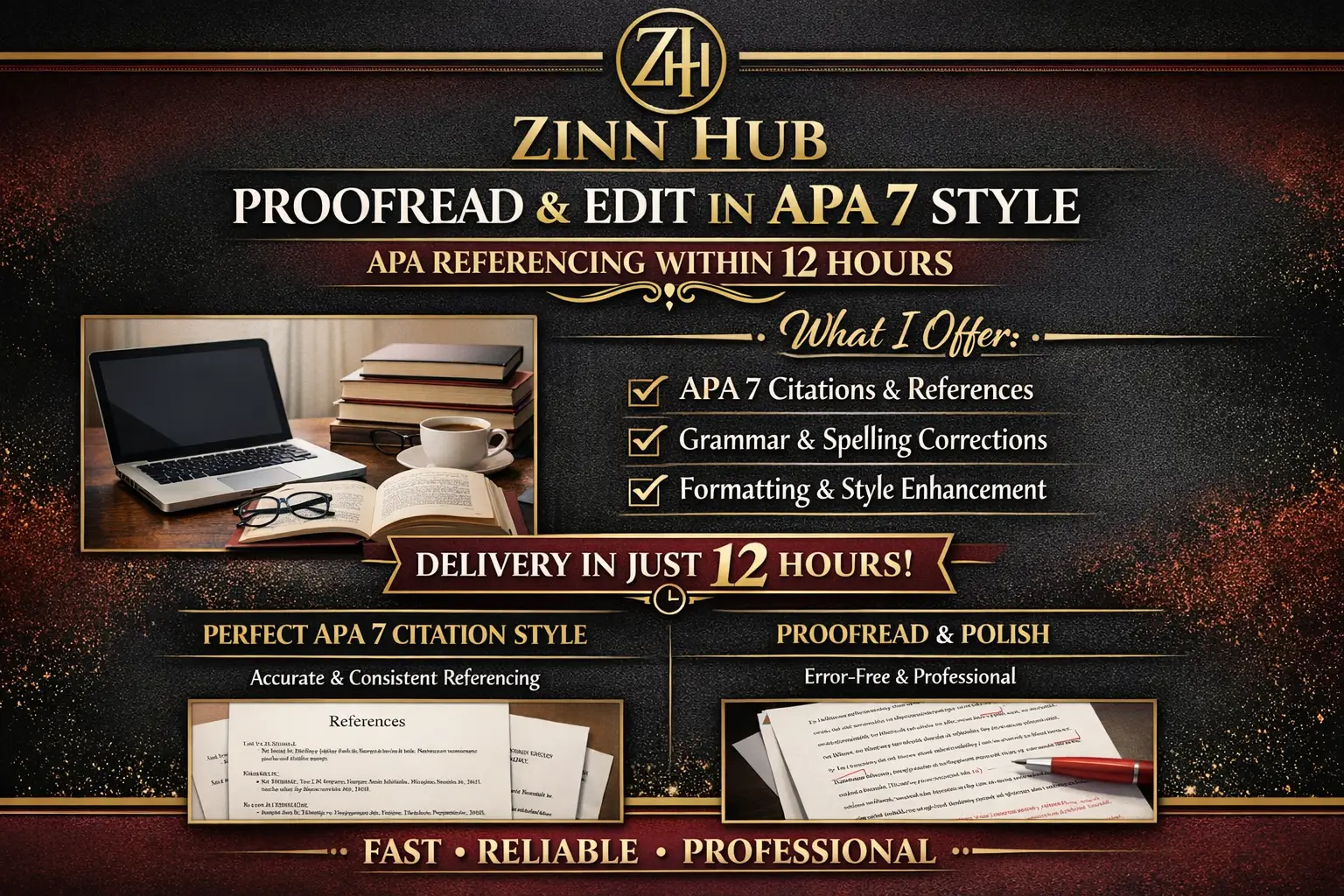 Zinn Digital ™ proofreads and edits your documents, articles, website content, blogs, letters, books, and anything related to English in APA 7, MLA, Harvard, and Chicago citation styles with absolute precision and professionalism.
