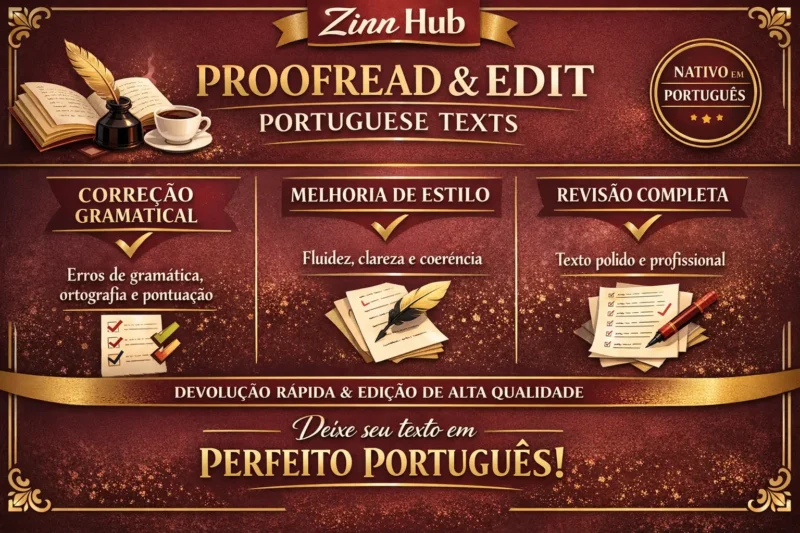My name is Zinn Digital ™, I'm a Portuguese native speaker and fluent in English. I'm offering my proofreading and editing services for texts originally written in Portuguese or translated from English to Portuguese, based from our London, England office.