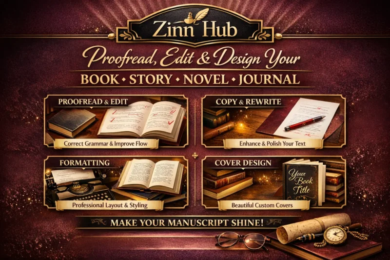 We specialise in transforming your manuscript or story into a polished, error-free, and professional piece of writing. Whether it's fiction, non-fiction, short stories, or any document, we've got you covered.