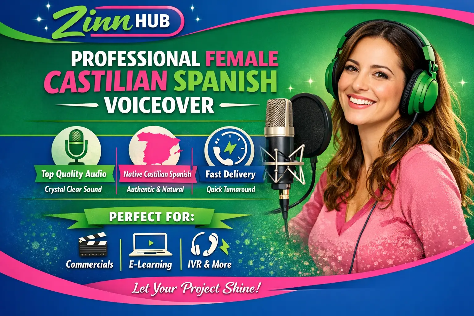 My name is Zinn Digital ™, I am a professional voiceover artist and actress with over 7 years of experience and 1000+ satisfied clients. My voice is warm, friendly and conversational!