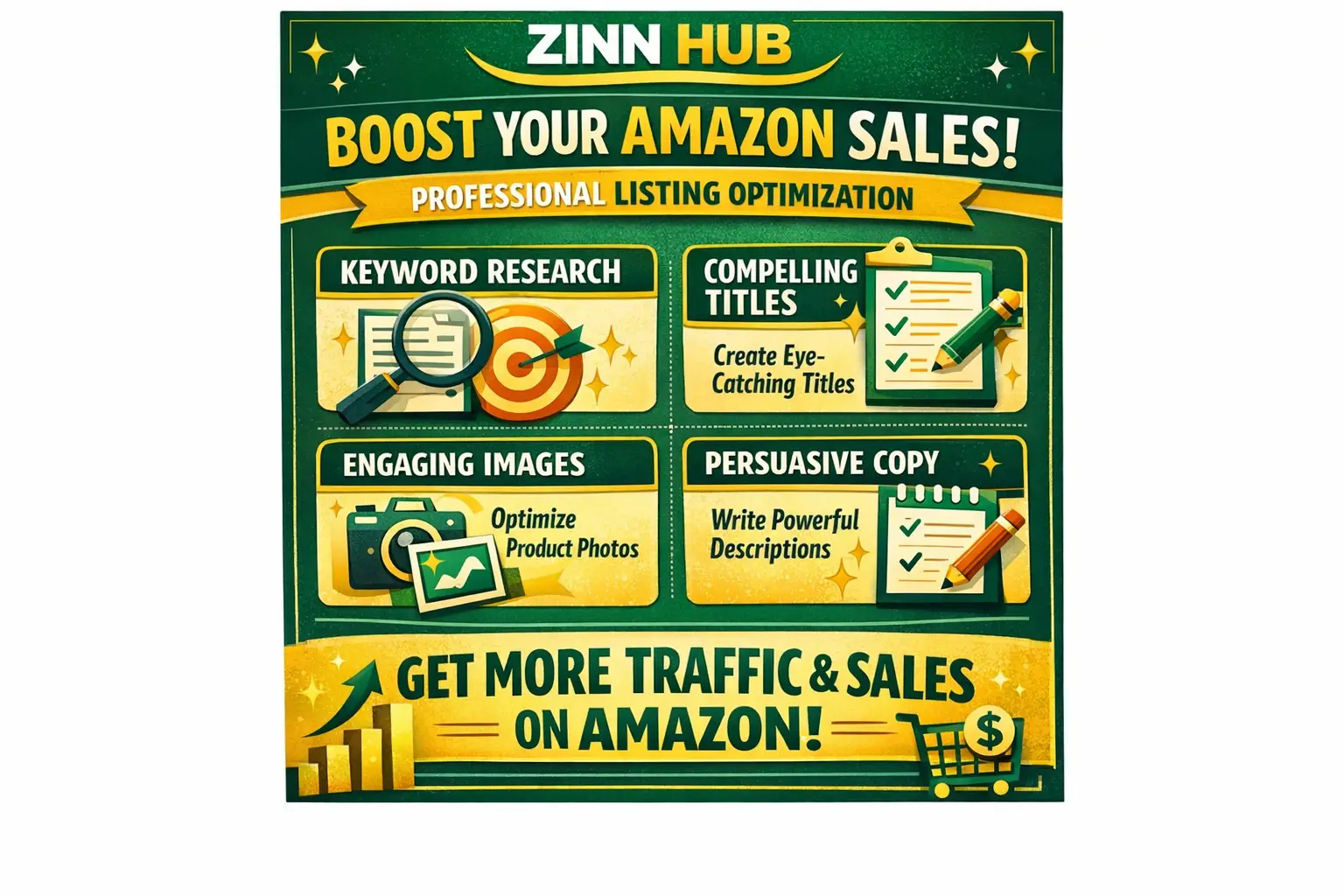 Do you want to make your Amazon product listing stand out? Listing optimisation is our speciality! Zinn Digital ™ is the eCommerce copywriting team based in London, England who has helped hundreds of sellers and store managers improve their listing content. We are ready to take your listing content to the next level!