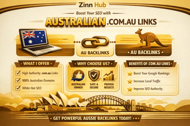 Our search engine optimisation services (SEO) will help display your website towards the top of organic search results for keywords most important to your specific business. Based in London, England, Zinn Digital ™ will build high-quality Australian backlinks for your website. We have numerous Australian high domain authority websites which will surely help boost your ranking on Google.com.au.