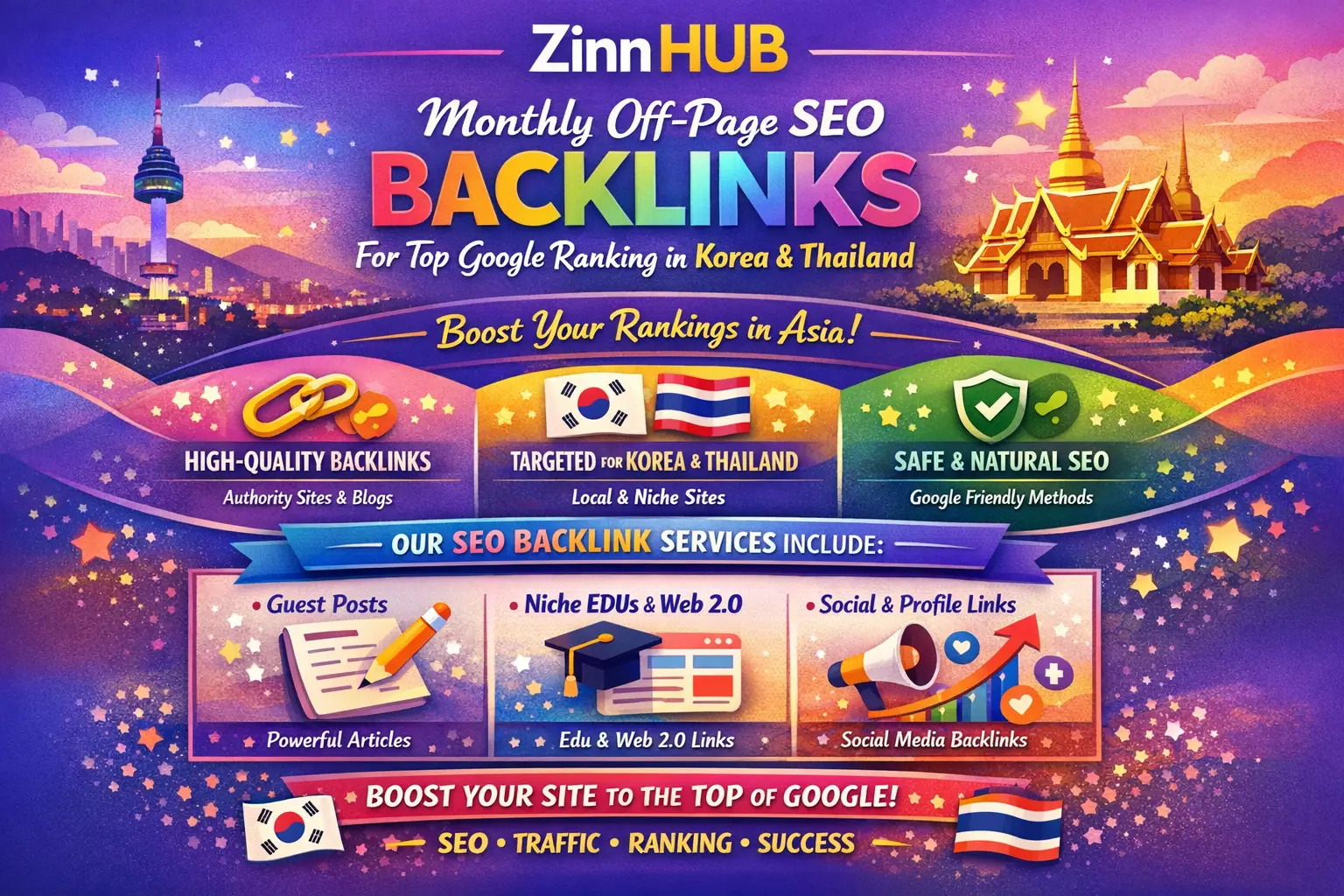provide monthly off page SEO backlinks for top google ranking in korea,thailand