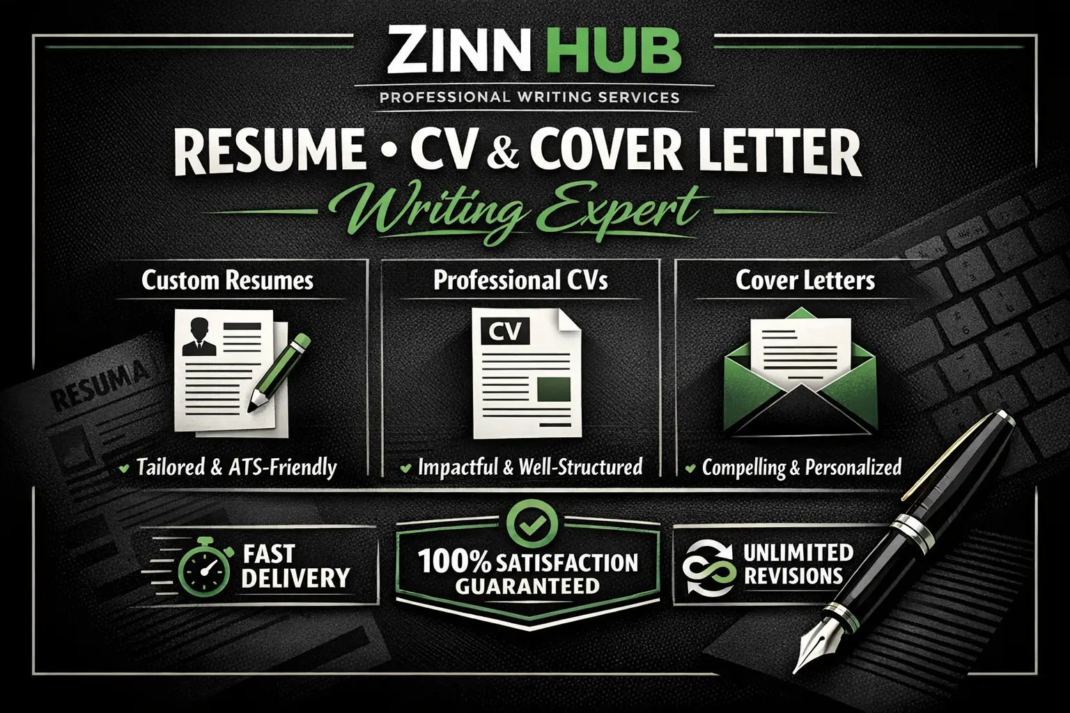 Zinn Digital ™ will provide a professionally written resume, cover letter, or LinkedIn profile with a 1 to 2 page resume & a custom cover letter for the job you are applying for.