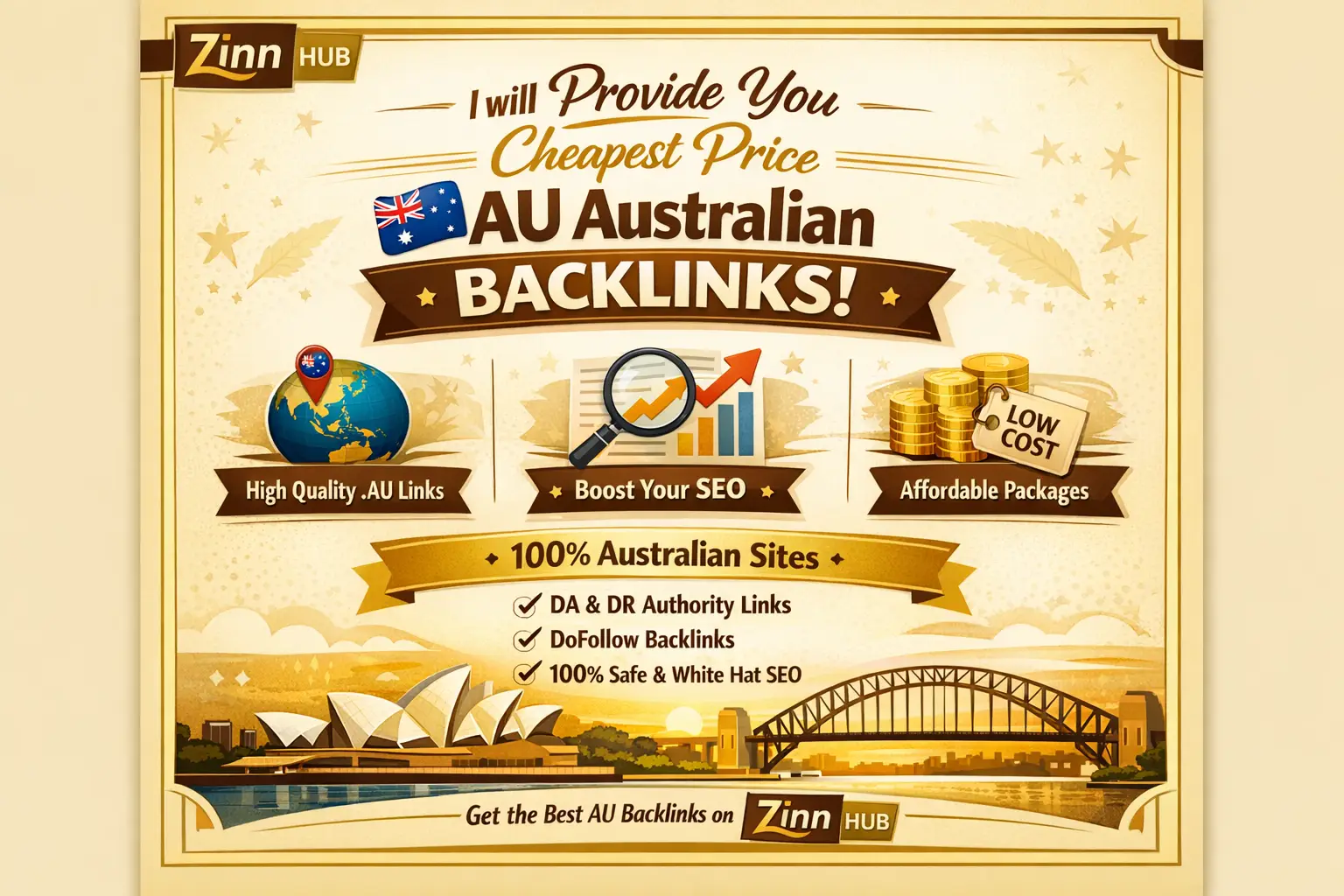 Hello, I am Zinn Digital ™ and I will provide you with the most competitive Australian backlinks service. Based in London, England, I will build high-quality Australian backlinks for your website. I have access to numerous Australian high domain authority websites which will significantly boost your ranking on Google.com.au.