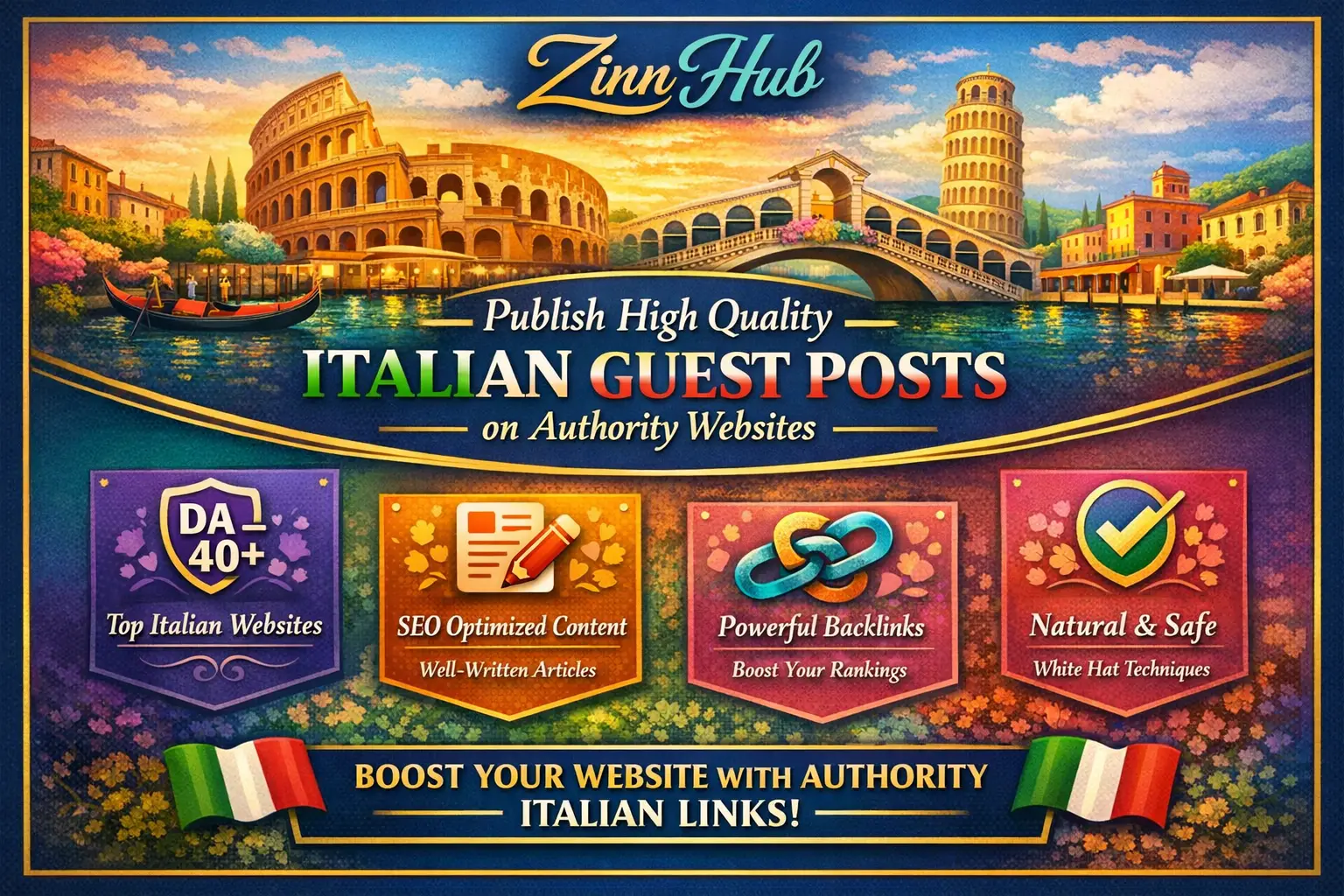 Zinn Digital ™ will write and publish articles on high-DA, niche-relevant Italian websites with dofollow backlinks, helping your site rank higher on Google and attract organic local traffic. Based in London, England, our team delivers exceptional results.