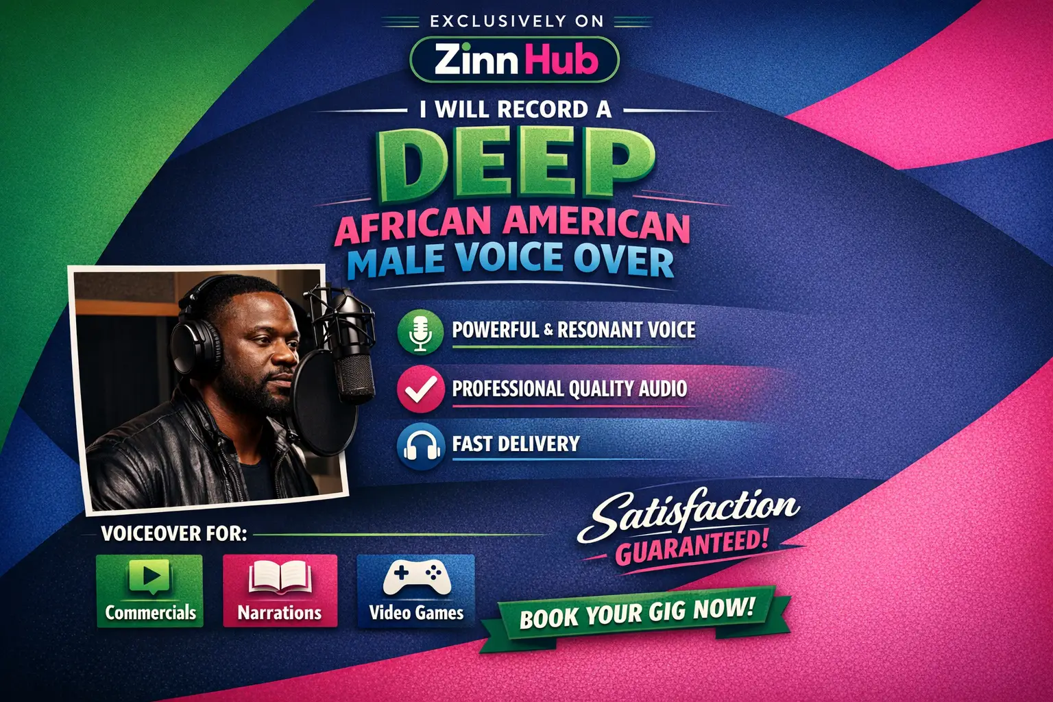 record a deep african american male voice over