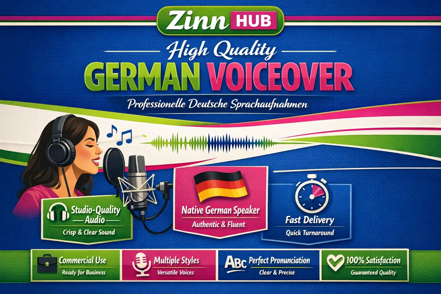 I'm from **Zinn Digital ™**, a voiceover service with **15 years of experience** and over **939 5-star reviews**. Based in **London, England**, we deliver **high-quality German recordings** for **TV commercials, corporate videos, e-learning, and audiobooks** tailored to your needs.