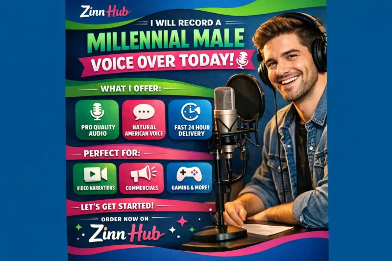 I am a full-time Zinn Hub voice-over artist with thousands of positive reviews, and thousands of happy buyers! With a pleasant, friendly, millennial tone, and affordable prices, I'm your go-to professional for voice-over services!