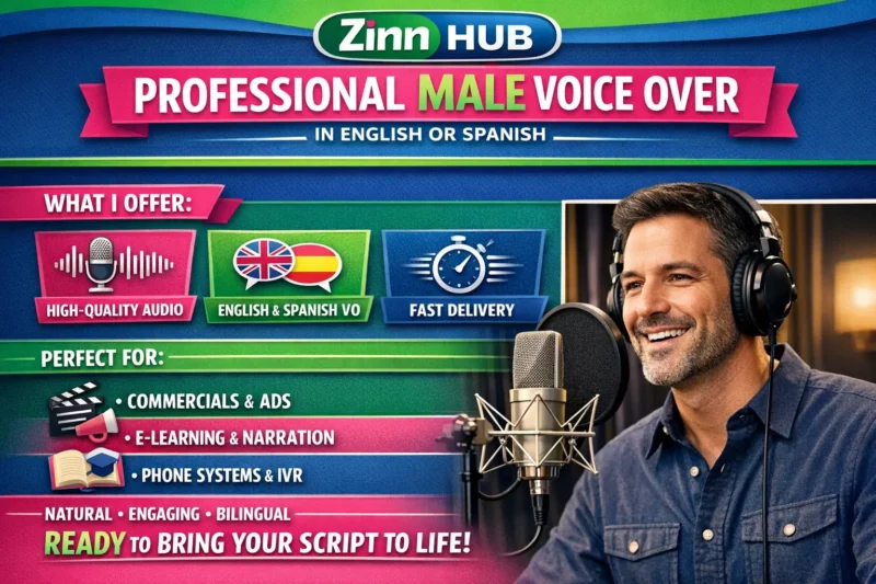 I can do your voice over in both Standard English (with a slight accent) and/or Latin American Spanish. With over 5 years of professional voice acting experience and a unique voice that can easily adapt to any kind of script, I can guarantee your full satisfaction with my service.